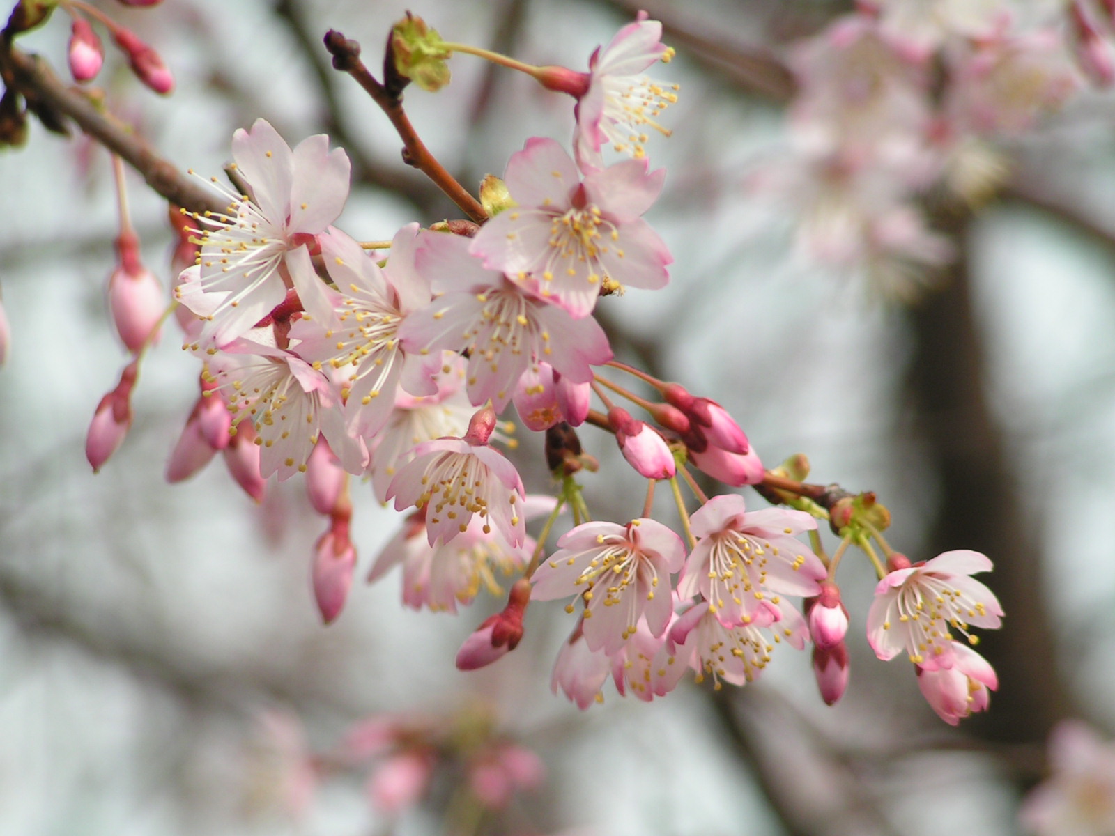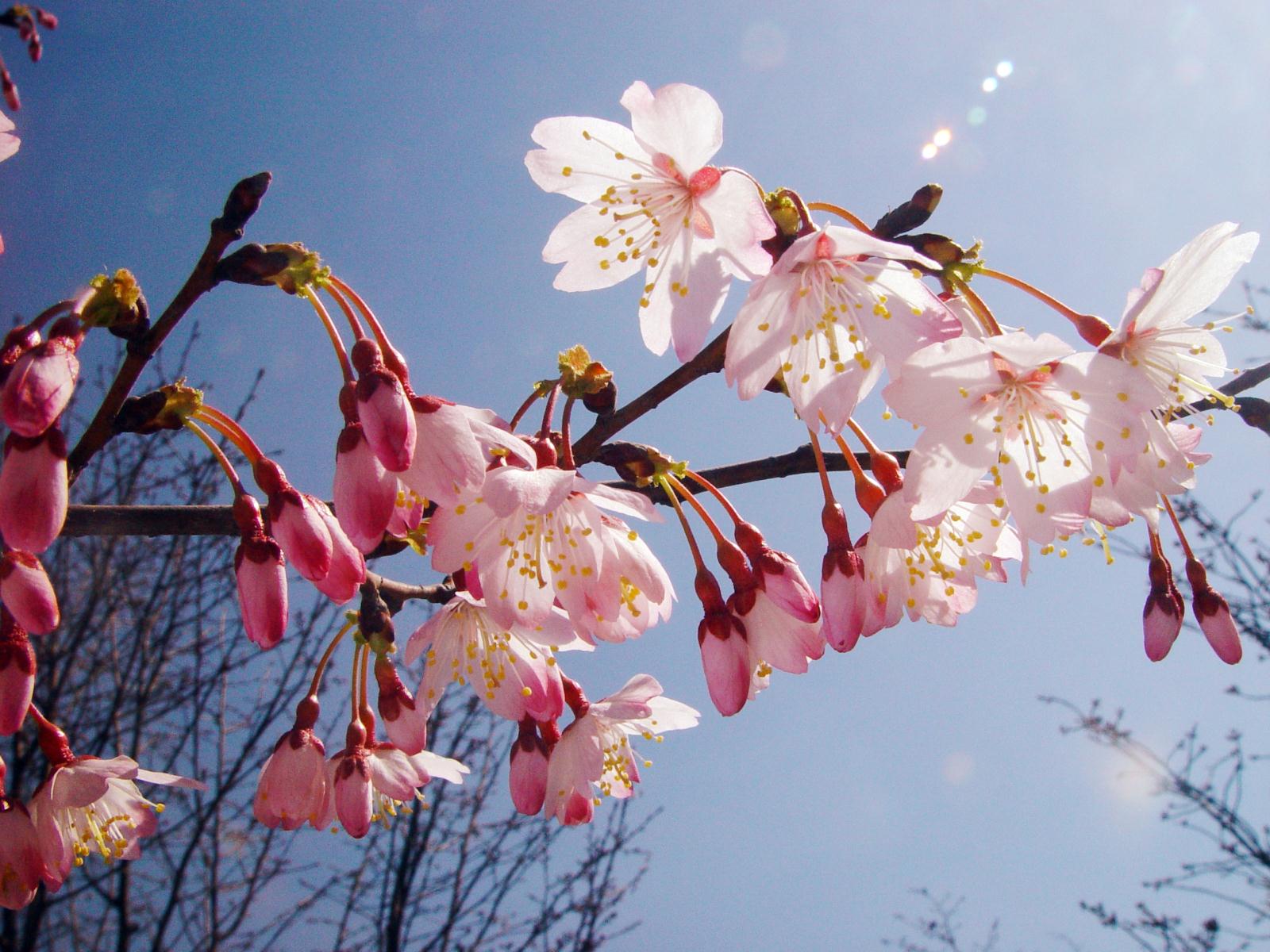 “杭州早樱”原产浙江西部,属早樱(或称彼岸)系列,1993年引种,1998年定植于樱花园,目前仅存2株,是本园从国内选育的观赏樱花品种。每年春天她的绽放,标志着樱花节正式拉开序幕。她树形不太高大,但姿态俊朗,花瓣细长娟秀,深红的花萼与纤长的花丝在落瓣后也如一道轻云。她秋季红叶鲜艳夺目,也具观赏价值。